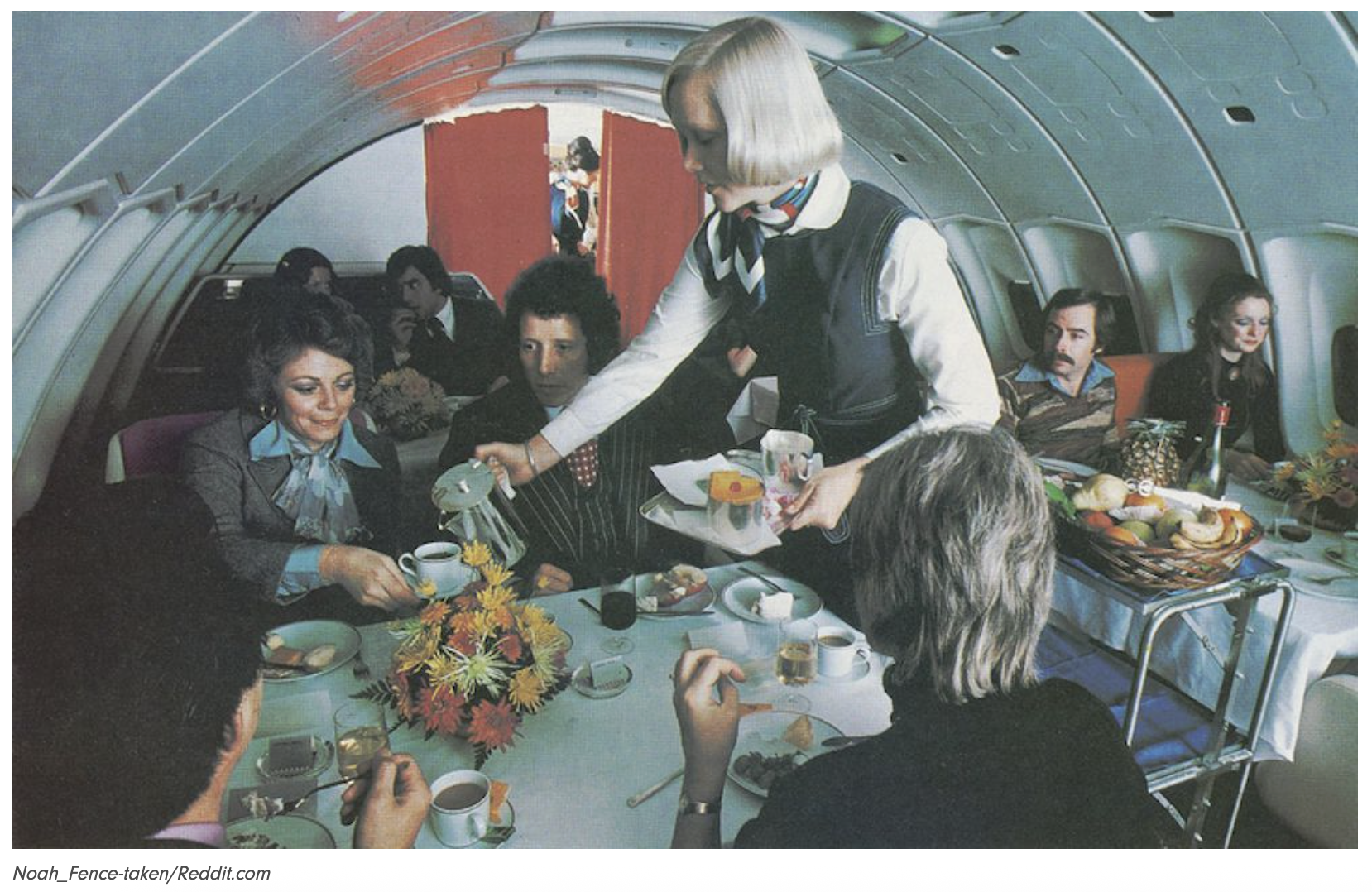 JUST FOR FUN-ISH: Speaking of luxury travel, here is a collection of vintage photographs of meals being served on airlines curated by Wilder Shaw. The one below of coffee being served on a Pan-am flight is about the least glamorous of the bunch.