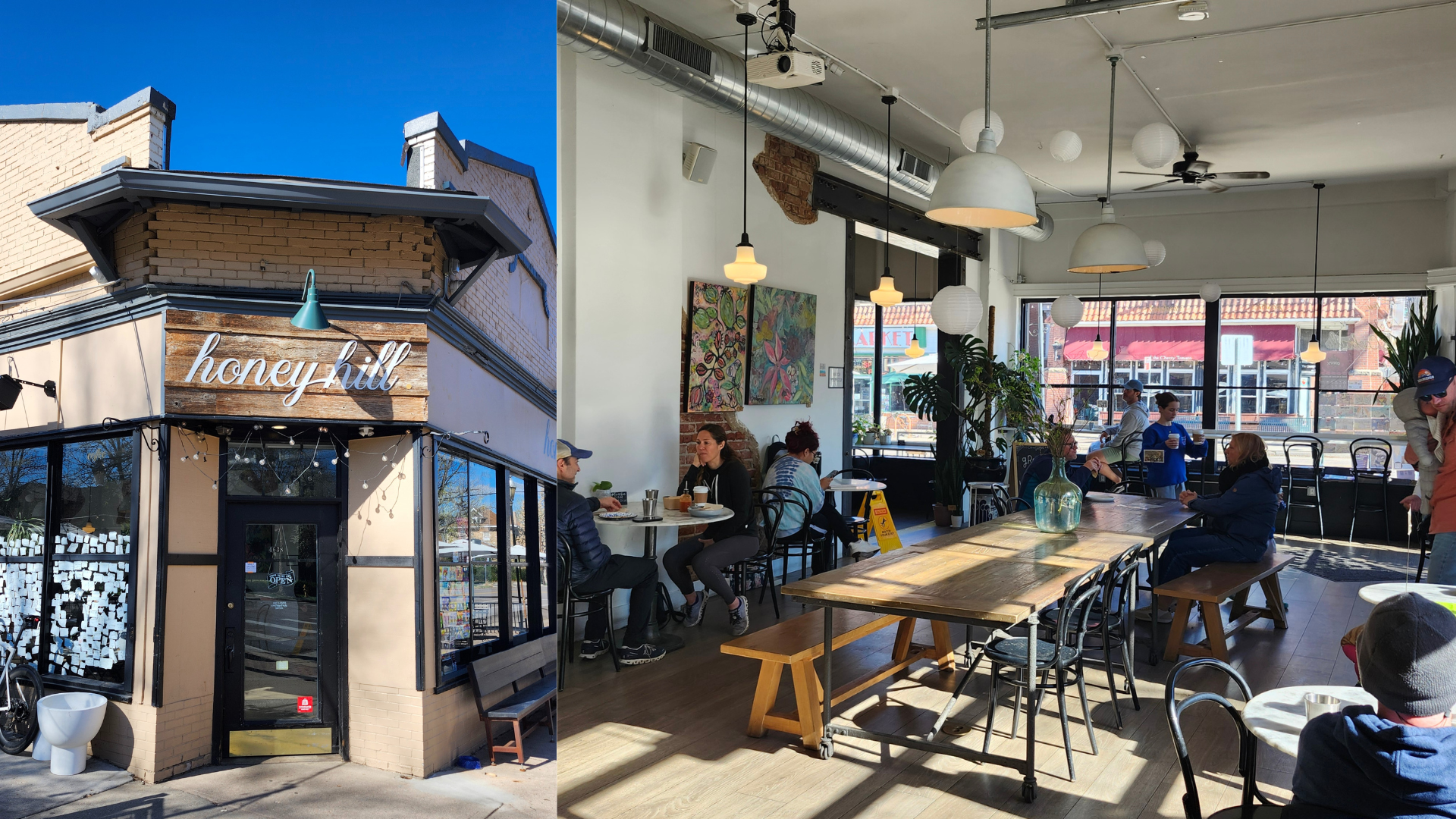 Honey Hill: A really cool cafe and ice cream parlor that is a great space for groups. The food smells fantastic, but the drip feels a bit of an afterthought. I sit on the patio even though the temps are only in the 40s. In Colorado, that feels alright.