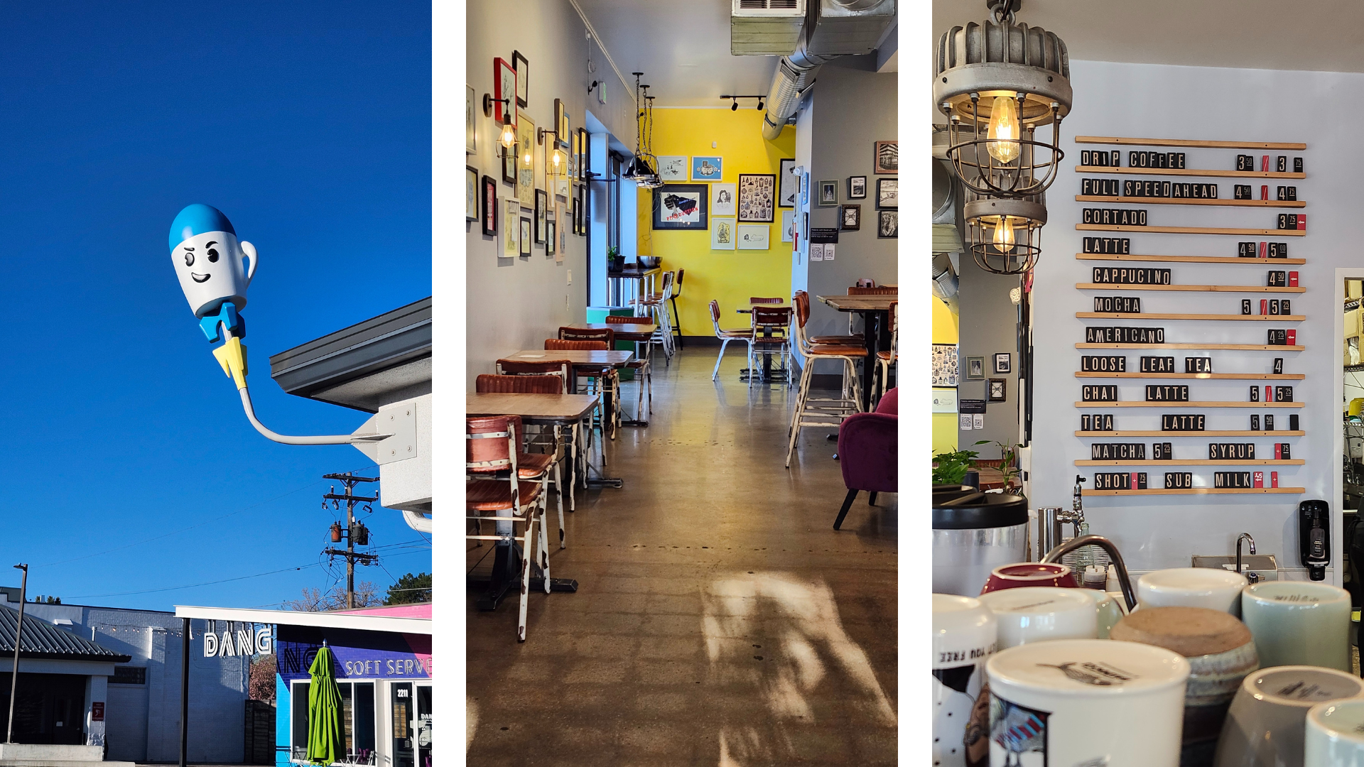 Torpedo Coffee: After a lovely week in the mountains with my better half, we’re on the way to the airport. Torpedo is on the way. They serve Corvus Coffee, and the art on the wall looks familiar because we have the same artist on our walls at home! The drip comes in a really big mug, and the owner, Katy, is behind the bar even early in the morning.