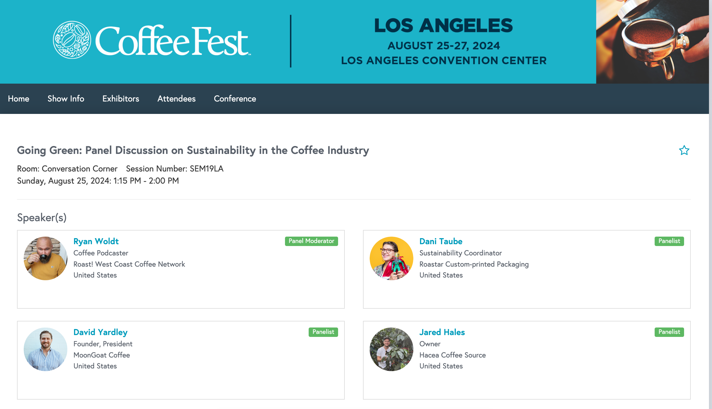 I’ll be joining the Going Green panel discussion on Sustainability in the Coffee Industry as the moderator. If you’re going to be in Los Angeles this weekend, please join us for a fun (really!) conversation about where the industry is and where it is going.